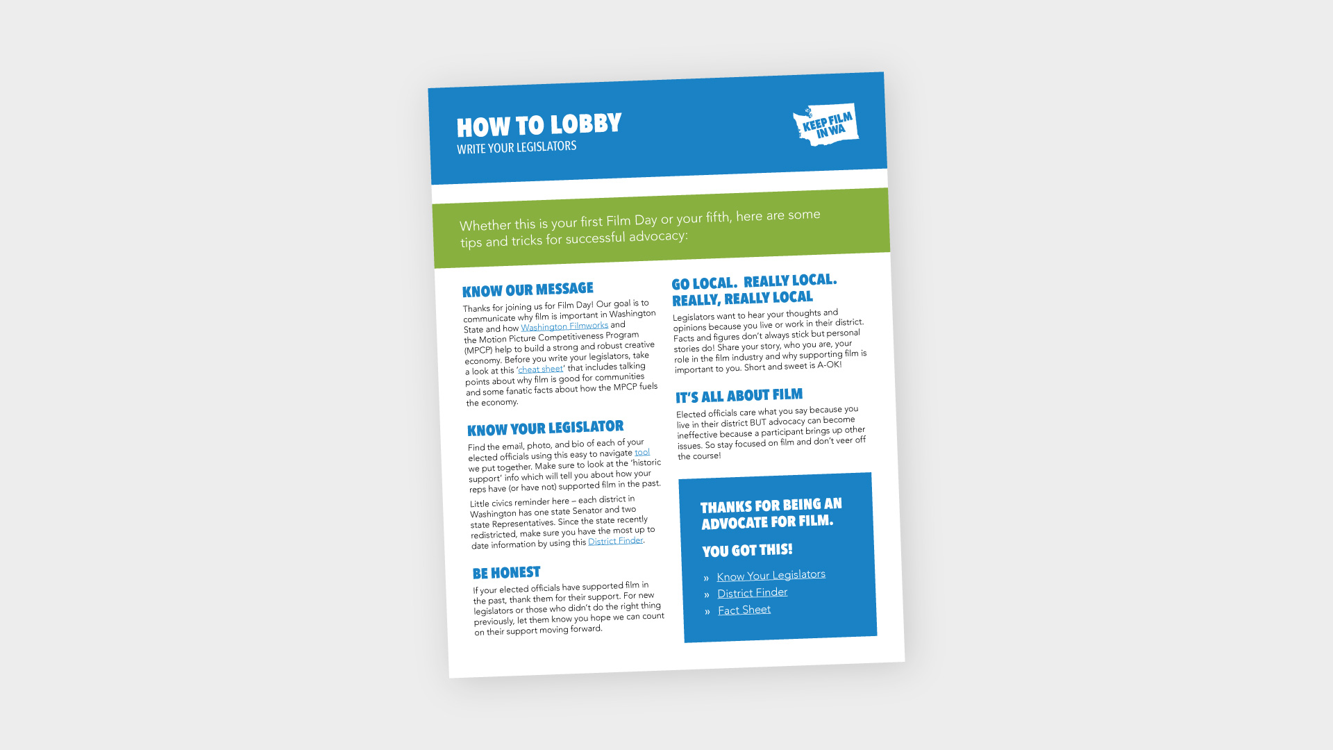 Alongside the in-person Film Day event, Keep Film in WA encouraged Washington’s film community to get engaged and write advocacy letters